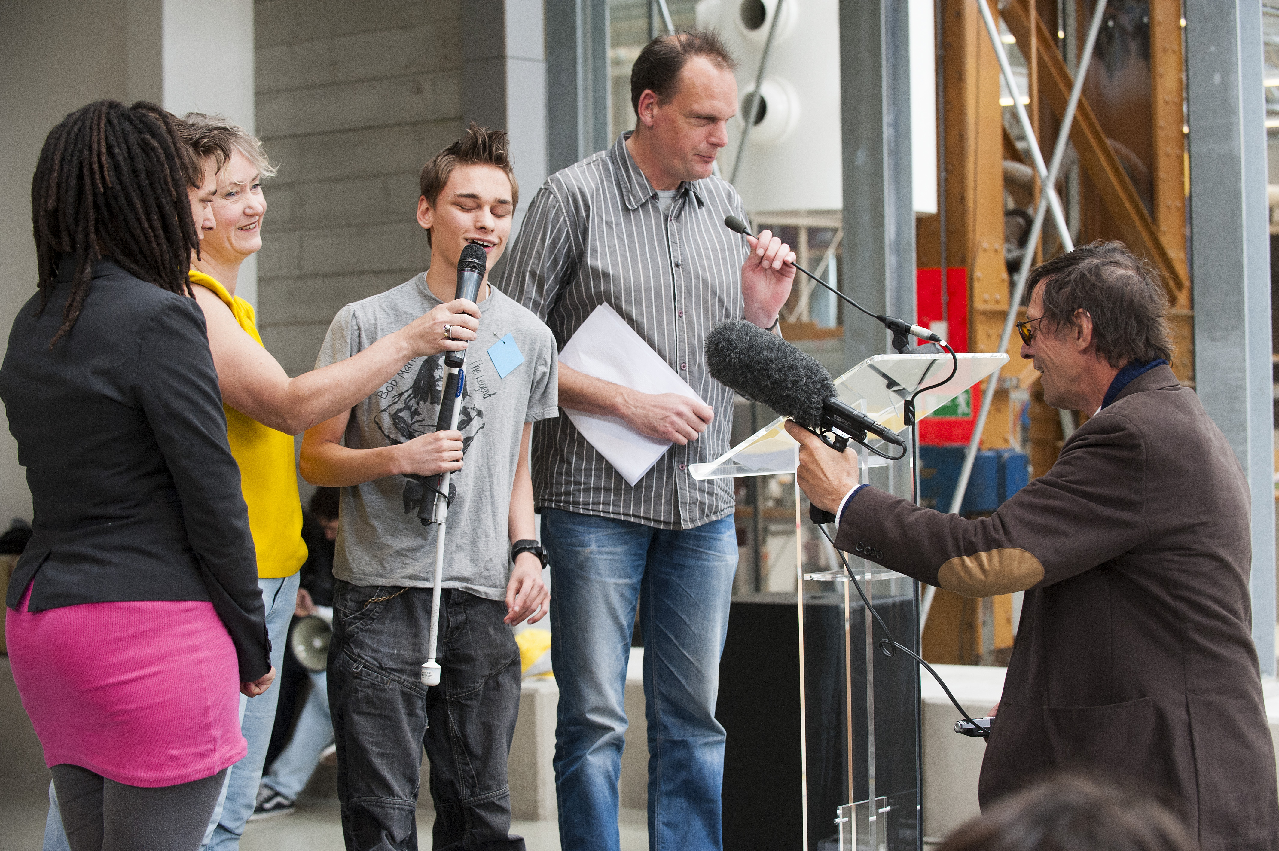 Stichting GiZ heeft zich bij deze tweede luisterdag speciaal op jongeren gericht. De Visioscholen van Amsterdam en Rotterdam en de blindenschool Bartiméus Zeist werkten actief mee. De jongeren van deze drie scholen hebben een deel van de programmering vormgegeven, door in groepen zelf geluidskunst te maken. En niet zonder resultaat! Een ziende bezoeker over de soundscape van Visio Amsterdam: